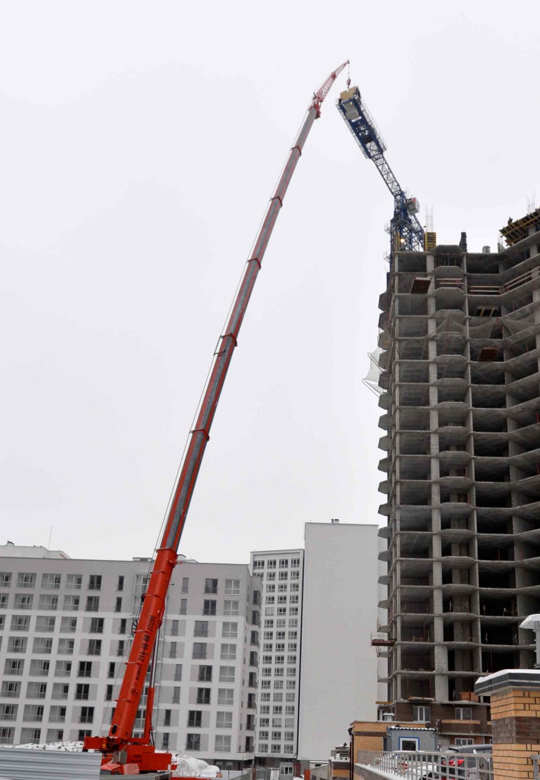 Монтаж башенного крана Comansa 10CJ140 на строительстве жилого комплекса «Панорама».