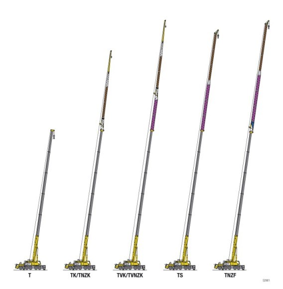 Одна шарнирная и пять телескопических секций, которые могут выдвигаться под нагрузкой. Скоростная система телескопирования TELEMATIK. Длина стрелы: 13,1 – 60 м.