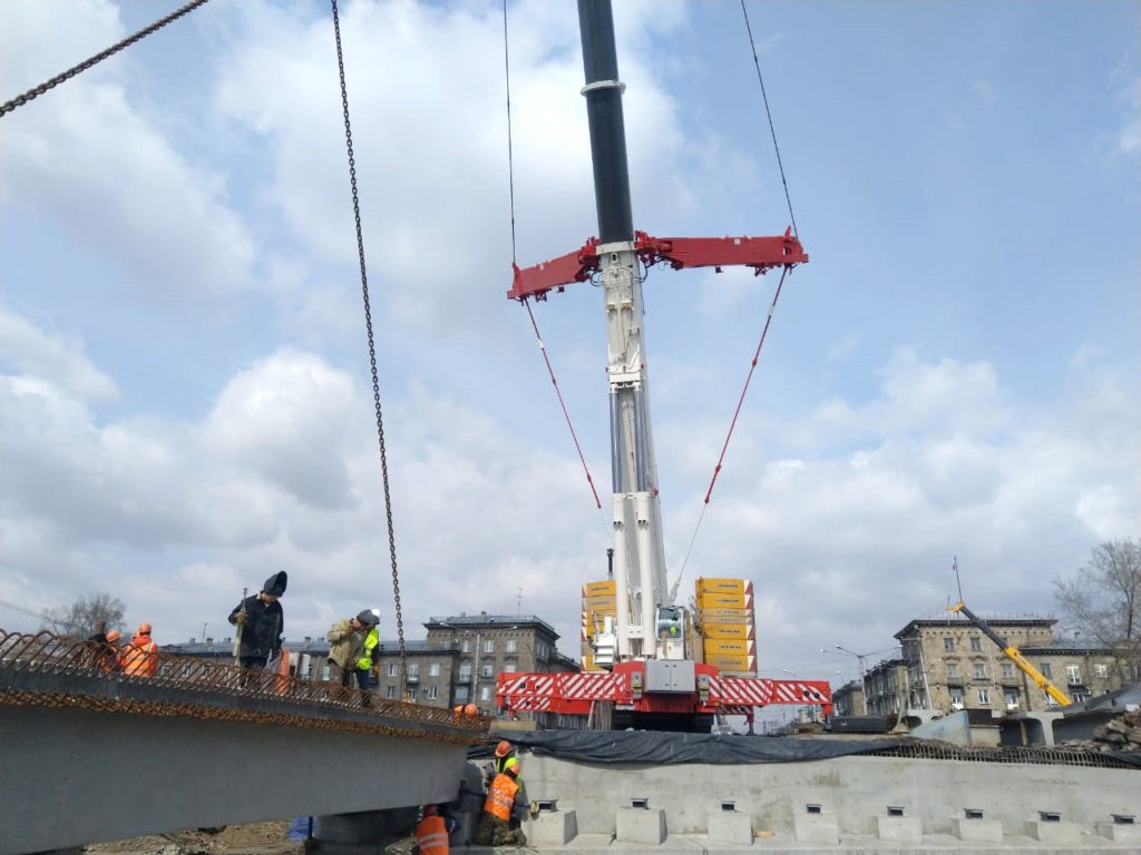 При помощи автокрана Liebherr 1400-7.1 компании «Краномонтаж» были смонтированы 63 железобетонные балки. 400-тонный автокран не [...]
